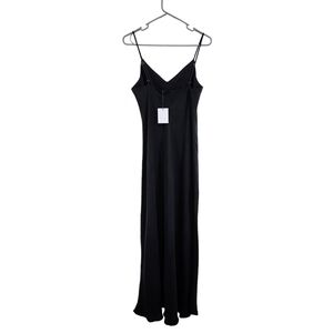 The full-length maxi silhouette hugs all the right places, and is dressed up by a V-neck and adjustable spaghetti straps.