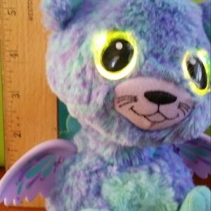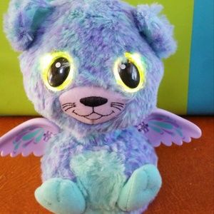 Eyes light up in about 10 different colors/shades and the neck tilts and grooves while it makes baby sounds and sounds of happy and afraid or gloom.