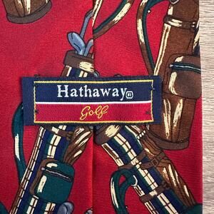 Hathaway Golf Silk Mens Necktie Novelty Image with Golf Club Bag Burgundy Red