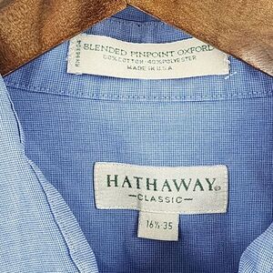 Hathaway Mens Classic Blue Pinpoint Oxford Dress Shirt Size 16.5 25PT