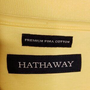Hathaway men’s new yellow soft short sleeve polo large. Gently used condition. Measurements are: 32” from shoulder to hem, and 25 ½" from armpit to armpit.