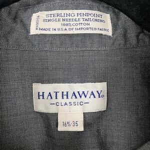 Hathaway Sterling Pinpoint Gray Button-Up Shirt Long Sleeve Men's 16 1/2 x 35 Cotton