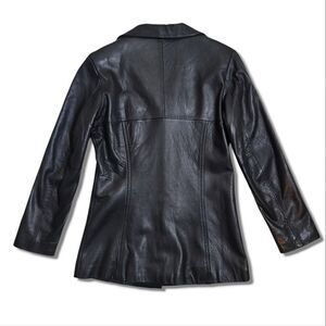 Hathaway Vintage Black Leather Buttery Soft Button-Up Fitted Jacket Coat