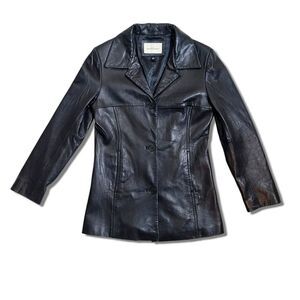 Hathaway Black Leather Buttery Soft Button-Up Jacket Fitted Coat;