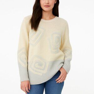 Tags: vintage sweater, cottagecore knit, quirky wool pullover, retro academia style, 90s aesthetic, oversized sweater, statement knit, spiral knit sweater, Korea made wool, unique design knitwear, retro layering, cozy pullover, artisan knit, whimsical fashion, unisex vintage sweater, quirky fall knit, oversized retro sweater, women’s wool sweater, novelty knitwear