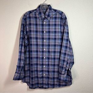 Hathaway Blue Plaid Long Sleeves Non Iron Button Down Shirt Men’s Medium