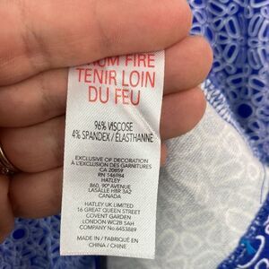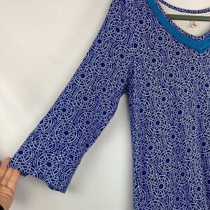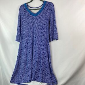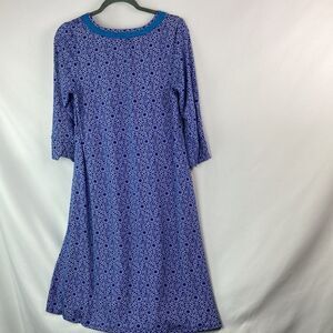 Hatley 3/4 length split sleeve blue and white sun pattern dress with teal Med
