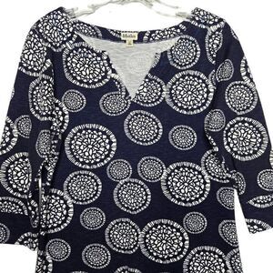 Hatley Blue Split Neckline 3/4 Sleeves Shift Dress Size Small