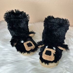 EUC. Hatley Bear Slouch Slippers. Black with adorable bear faces on the front of each slipper. Size L (11-13)