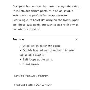 Hatley Girls Stretch Denim Wide Leg Pants Heart Pockets Girls Size 3 $50