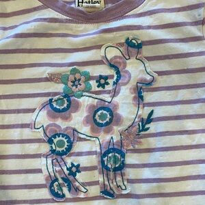 Charming long sleeve tee with lavender stripes. Features a floral deer design. Perfect for playful days. Size 18-24 months. Perfect condition!