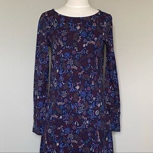 New with tags Hatley navy blue shift dress with multicolored abstract tassel and floral print, size Small.
