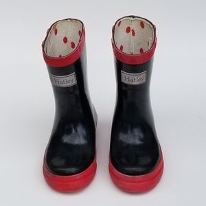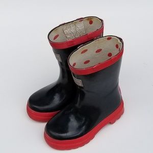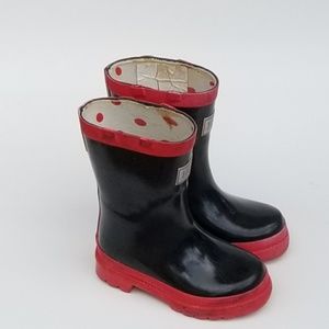Hatley Pull On Rain Boots Black and Red Rubber