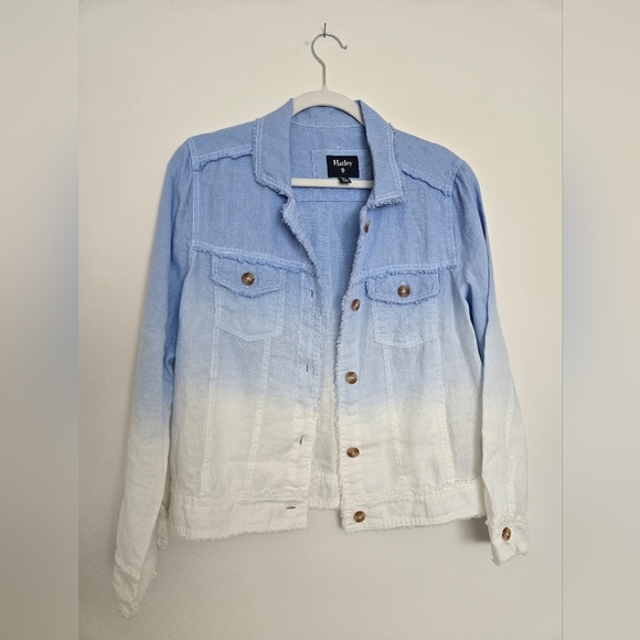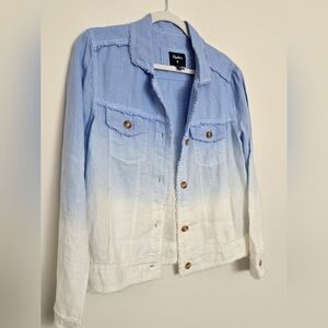 Hatley Women's Blue and White Ambre Linen Jacket Button Front | Small NWT