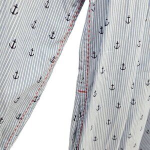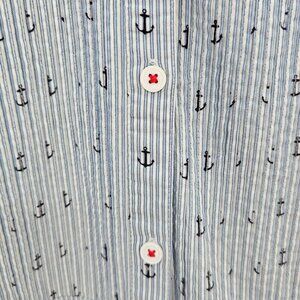 Hatley Womens L Cotton Pinstriped Anchor Button Up Shirt Dress with Pockets