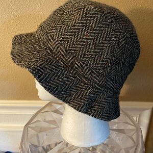 Really nice condition! Great colors! 100% wool. Brown is the main color. No size listed but has some give. It fits my head but is a little too big. Clean home always! No weird smells, no stains, no holes. Looks like it’s never been worn. Really nice substantial hat! Castlebar, made in Ireland.