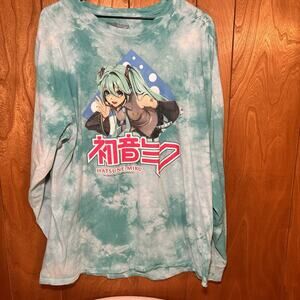 Hatsune Miku Long Sleeve Tie Dye Shirt Vocaloid Anime Graphic Tee Size XL