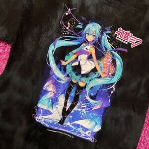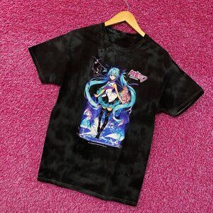 Hatsune Miku gray/black tie dye Tshirt size medium enerally measures 19 inches pit to pit and 28 inches long never worn first hand overstock great condition with an amazing graphic