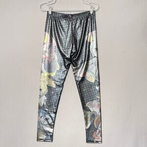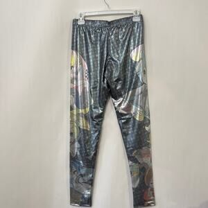 Hatsune Miku Vocaloid Cosplay Leggings Womens Large Silver Graphic Metallic