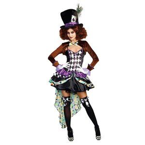 Step into a world of wonder with this Whimsical Mad Hatter Costume, a beautifully detailed ensemble featuring a corset-style dress, layered high-low skirt, and playful accessories. Whether you're attending a Halloween party, cosplay event, or themed tea party, this eye-catching outfit is designed to bring fantasy to life!