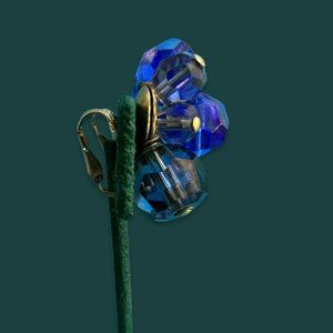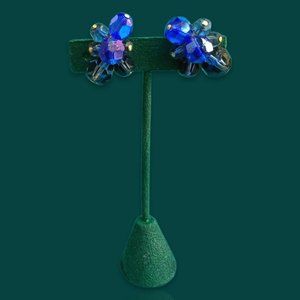 Hattie Carnegie GLASS AB CRYSTAL Blue Beaded Clip On Earrings Aurora Borealis