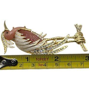 Hattie Carnegie Heron Bird Brooch Pin Coral Lucite Rhinestone Egret Unsigned VTG