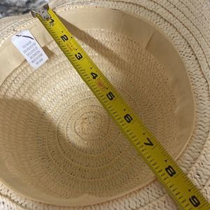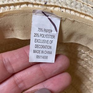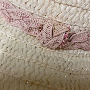 Light colored straw hat, braided pink band