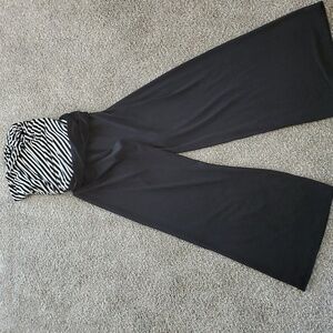 Haulter jumpsuits. Black and white striped top. Black bottom Wide leg. By Lepis