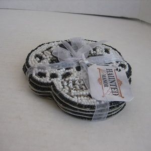 Haunted Manor Skull Decorative Black/Grey/White Beaded Drink Coaster Set of 4 NW
