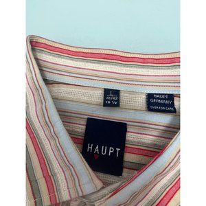 Haupt Men Shirt Textured Button Up Long Sleeve Large L 41/42 16.5
