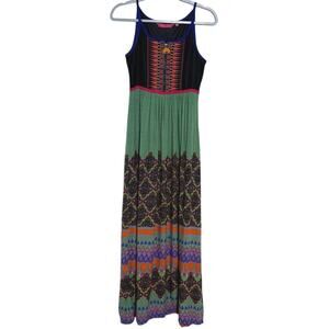 Haute Curry Colorful Embordried Maxi Dress Boho Ethnic Inspired Sz XS