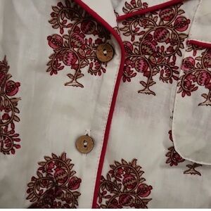 Relax in style with this elegant floral print pajama set. Featuring a cream base with brown floral patterns, this set offers both comfort and sophistication. Perfect for a cozy night's sleep.