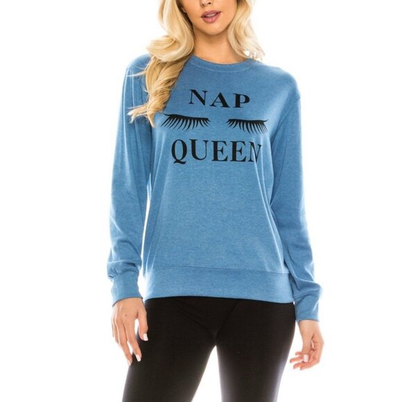 Haute Edition Nap Queen Lounging Blue Thin Sweatshirt XL Cotton Blend Casual