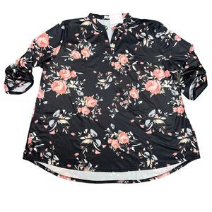 Haute Edition Womens Tunic Blouse Top Floral Print Pullover Black Pink 3X