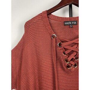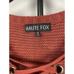 Haute Fox Rust Red Knit Short Doleman Sleeve Tie Neckline Blouse Size 3X