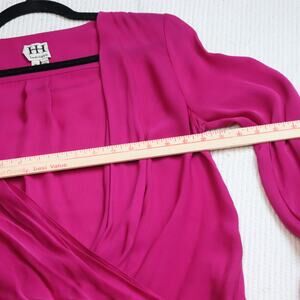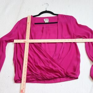 Stunning and sophisticated, this Haute Hippie blouse in vibrant fuchsia is crafted from 100% silk for a luxurious feel. Features a dramatic draped front with a flattering wrap silhouette and long sleeves. Lightweight and bold—perfect for date night, the office, or brunch with friends.