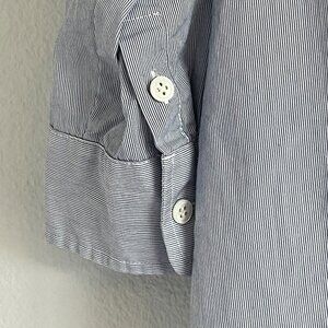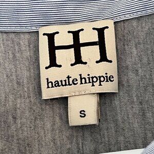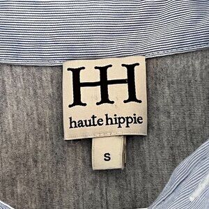 Haute Hippie 3/4 Sleeve Button Front Blouse Blue Pinstripe Cotton Blend Small