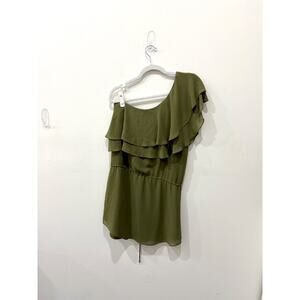 Haute Hippie Asymmetric Ruffle One-Shoulder Mini Dress Green Women's Size Small