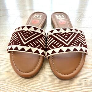 Haute Hippie Aztec Embroidered Slide Sandals | Dark Brick Red Size 9.5
