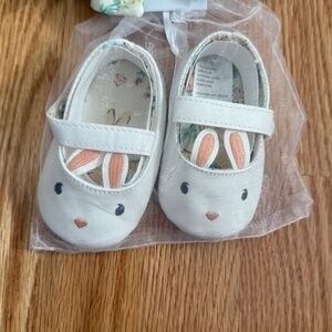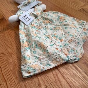 BRAND NEW WITH TAGS!!!!!! SUPER CUTE Haute Hippie Baby Girl Easter Dress W/Diaper Cover, Bunny Ear Headband W/Bow & Matching Faux Leather Bunny Shoes W/Grippies & Button Strap! Dress Has Button Detail Down The Front & ADORABLE Scalloped Collar & CUTE Detail On The Hem! Diaper Cover Has Bow On Waistband & Elastic In Legs & Waistband! Comes W/Fabric Hanger!