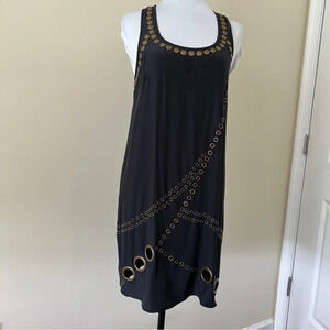 Haute Hippie Black Silk Sheath Dress with brass rivet design Size S