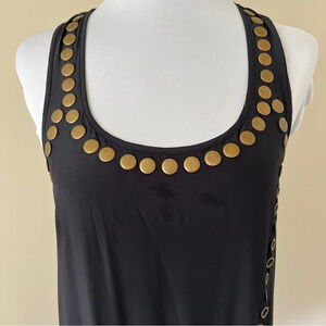 Haute Hippie Black Silk Sheath Dress with brass rivets design Size S
