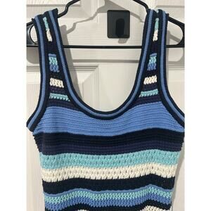 Haute Hippie Blue Striped Crochet Knit Midi Tank Dress size M