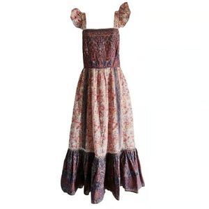 Beautiful high end designer Haute Hippie Style featuring a floral, Paisley design, open lattice lace, ruffle, open back, teal blue, red, pink, cream, olive, coral, tan, and just a beautiful fall Arrangement of color. item is new with tags and is lined, cotton, and easily throw on a blazer for year around use. View all photos as they are apart of description and contain significant information and is exact item you will receive. May be removed at anytime due to Co listing. Thanks for looking. item 10032.00