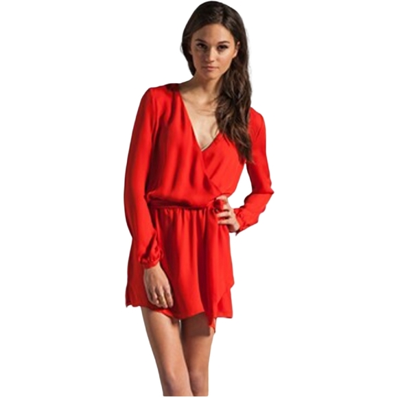 Haute Hippie, Deep V Faux Wrap Long sleeve Dress, Size Medium, Deep Brown color. Made from 100% Silk. This Dress is Pre-Owned and in Very Good Condition!