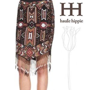 Haute Hippie Embellished Beaded Stretch Skirt