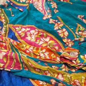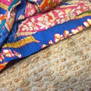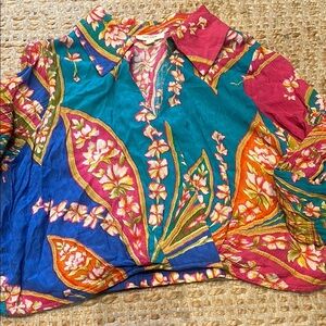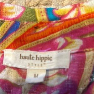 Vibrant Haute Hippie blouse with pink, blue, and orange patterns. Bohemian style for a chic look. Great condition
