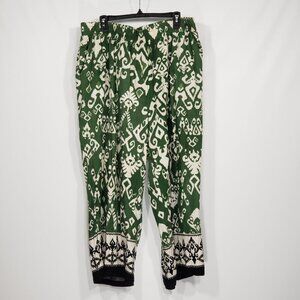 Haute Hippie Green Batik Print Linen Blend Pants Size 3X