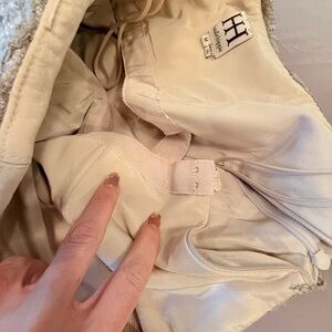sweetheart neckline, Full lined with interior boning and hook and eye secondary lining at waist for support invisible side zip