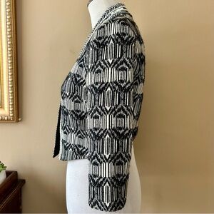 Haute Hippie Ikat Beaded Bolero Cropped Jacket Blazer Black White Textured Tweed